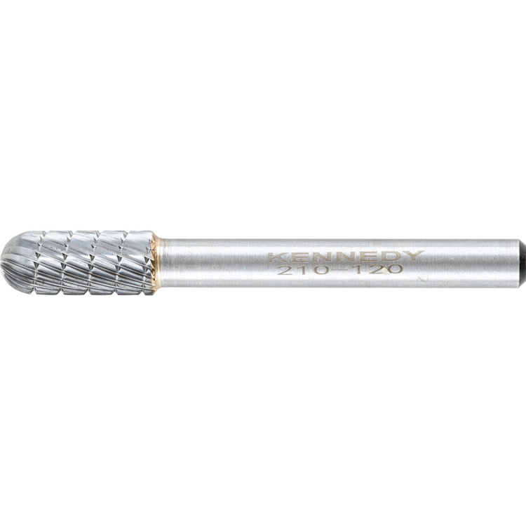Kennedy Carbide Burr, Uncoated, Chipbreaker, 8.0mm, Ball Nose Cylinder