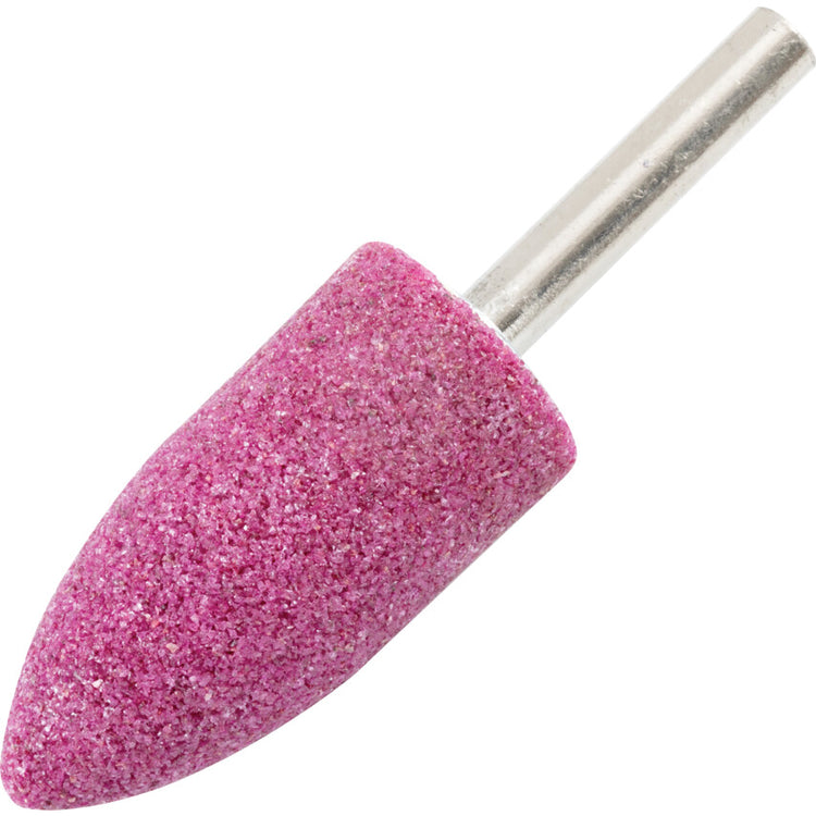 High-quality 'A' Shape Mounted Points - with a Shank Diameter of 6mm. Features and Benefits • All points are aluminium oxide with 'rubenite™' as standard, providing vastly improved durability & reliability • Available in a wide range of shapes and sizes to suit every need Typical Applications • Suitable for portable die and straight hand grinders • For all general purpose grinding and deburring on steels and most metals Notes • Shank diameters are metric as listed below with inch sizes available on request • Maximum speeds are quoted assuming that collet to back of point does not exceed 12.7mm (1/2") and are for guidance only