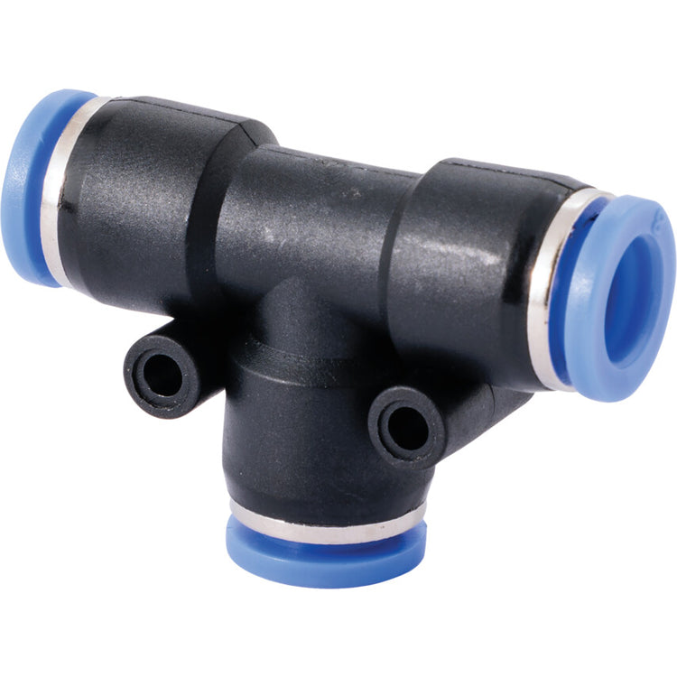 The Equal Tees ensure quick and simple tube insertion whilst also boasting a compact lightweight design with a well proven tube retaining system. The tapered threads have a re-usable thread seal and parallel threads have a rubber washer. The main body is manufactured from nickel plated brass, acetal resin, PBT with a stainless steel retaining ring, nitrile tube seal and acetal resin tube release collar. Available in a variety of sizes to suit your needs. Features and Benefits • Suited for use with nylon and polyurethane tubing for versatility of use • Available in a range of sizes to suit your needs • Quick and easy tube insertion with a solid seal • Lightweight design due to the acetal construction, stainless steel retaining ring and nitrile tube seal and acetal resin tube release collar Typical Applications • Engineering • Plumbing • Garages