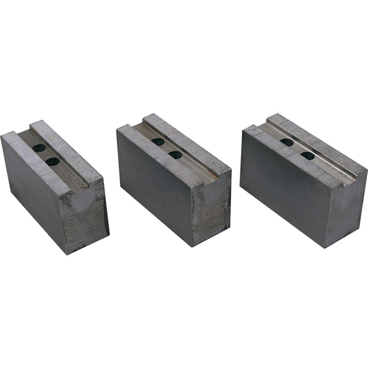 This range of serrated, soft jaws all come in sets of 3. They have been designed to suit metric serrated power chucks (Kitagawa, Howa, Matsumoto, Pratt Burnard, SMW and Autoblok etc.). Features and Benefits • Large range of sizes and serrations • High quality build • Provide a secure hold to the workpiece Typical Applications • Shaping • Knurling • Turning • Cutting • Deforming