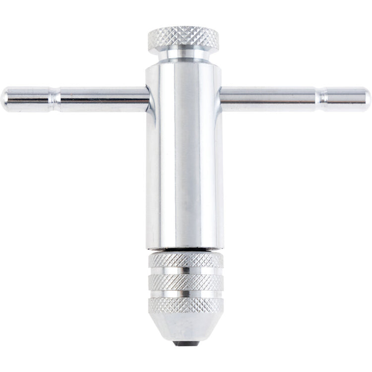 Manufactured from hardened and tempered steel, with chrome plated high polish finish. Switchable between forward and reverse coupled with the multi-positional sliding T-bar makes this tap wrench ideal for use in confined spaces. Features and Benefits • Manufactured from hardened and tempered steel for durability • High polish finish and chrome plated • Switchable between forward and reverse • Ideal for use in confined spaces Typical Applications • Tapping • Hand tapping Notes • Individually boxed