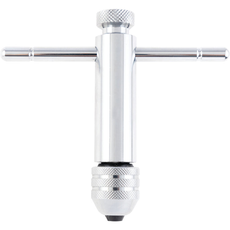 Manufactured from hardened and tempered steel, with chrome plated high polish finish. Switchable between forward and reverse coupled with the multi-positional sliding T-bar makes this tap wrench ideal for use in confined spaces. Features and Benefits • Manufactured from hardened and tempered steel for durability • High polish finish and chrome plated • Switchable between forward and reverse • Ideal for use in confined spaces Typical Applications • Tapping • Hand tapping Notes • Individually boxed
