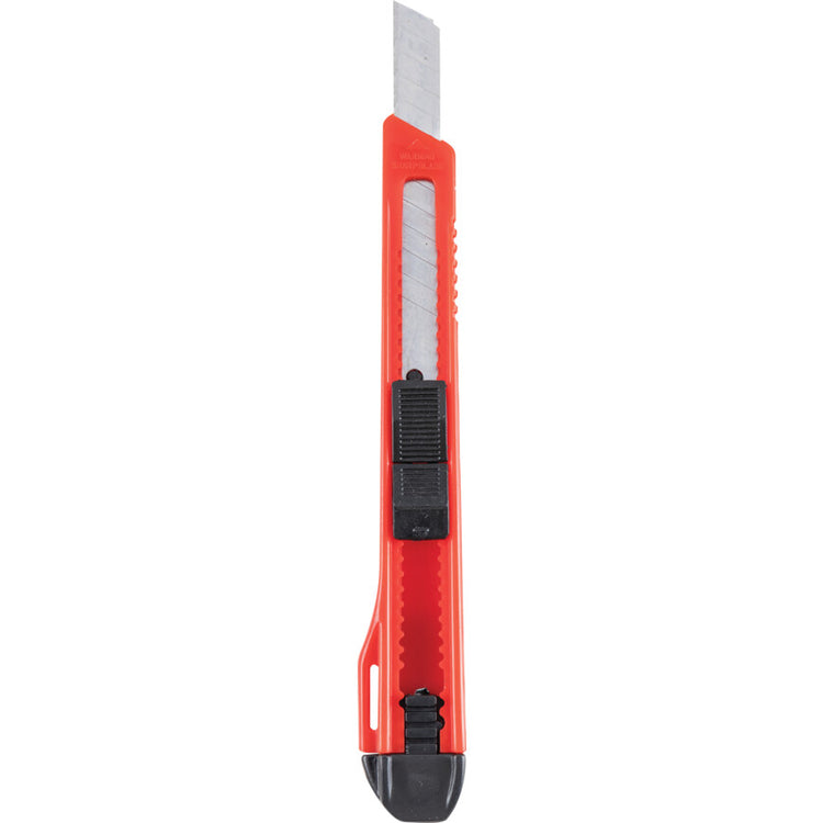 This mini knife possesses a retractable 13 segment snap-off blade, blade snapper and blade locking mechanism. The design also features a contoured, moulded grip and steel safety slides to prevent blade slippage or case splitting and give a smooth action. Complete with 2 spare blades stored in handle magazine. Features and Benefits • Integral blade snapper makes easy work of removing the blunt segment safely • 13 segment blade allows you to easily snap off a segment when it becomes blunt to reveal a freshly sharpened edge • Comes with two spare blades which are stored in the handle of the knife • Retractable blade avoids accidental cutting and reduces the risk of injury • ABS plastic body is durable and improves grip and comfort when using Typical Applications • Warehousing • Retail