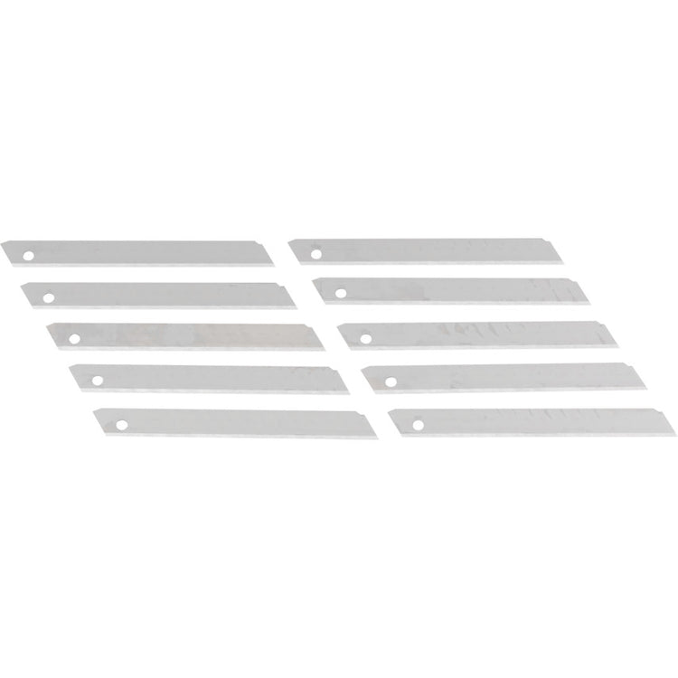These industrial quality knife blades have a superior edge hardening for longer tool life and sharper edge even with extended use. Offering best value with longer working between blade changes and with easy, safe segment-snap to renew leading edge. Available to purchase with either 8 or 13 segments depending on your requirements. Blade handles are sold separately. Features and Benefits • Superior hardened edge ensures you get more wear from each blade segment • Designed to last longer than the average blade to lower the frequency of removing a segment • Easy snap off action gets you working quickly without the need for tools to remove each segment • Manufactured from 1% carbon steel to bolster product durability Typical Applications • Ideal for industries in which cutting is inevitable and frequent and therefore needs to be safe such as: • Warehousing • Crafting • Production Line • Food Industry • Retail • Construction