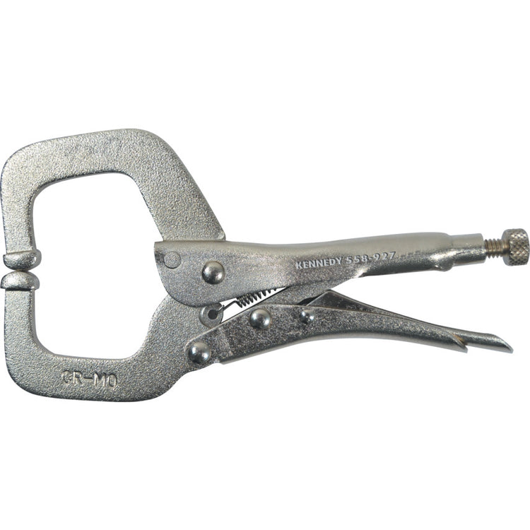 Wide and deep jaw profile, clears obstacles to firmly clamp sections that a normal grip wrench cannot. • Adjustable jaw opening. • Ergonomic design, comfortable handling. • No Pinch, Easy Release. • Concave profile for better push-pull. 3 Year Warranty For further information please visit our Kennedy® warranty page