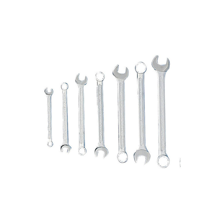 Kennedy combination spanners are manufactured from chrome vanadium steel with a satin finish body and highly polished heads. 15 open jaw angle to shank and ring end offset. Conform to: 1/8" - 1/2" - DIN 3113 & BS192:1982. Contents 1/8", 3/16", 1/4", 5/16", 3/8", 7/16" and 1/2". 3 Year Warranty For further information please visit our Kennedy® warranty page