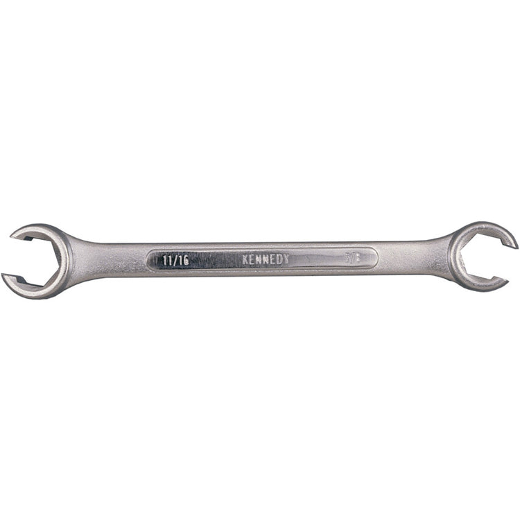 Conform to ASME B107.4 & ANSI B107.9. Made from high quality chrome vanadium steel. Satin finish body with highly polished heads. Offset ends. The wrench will fit over the pipe to give a positive location on the nut. Can be used on hydraulic pipes, brake pipes etc. Chrome plated finish to pevent from corosion. 15° Head angle 3 Year Warranty For further information please visit our Kennedy® warranty page
