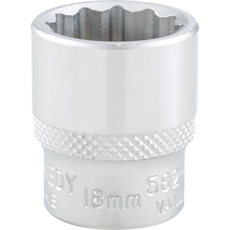 Kennedy 3/8in. Drive, Standard Bi-Hexagon Socket, 18mm, Metric, Chromed Finish