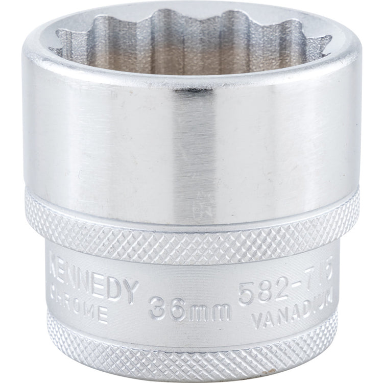 Kennedy 1/2in. Drive, Standard Bi-Hexagon Socket, 36mm, Metric, Polished Finish