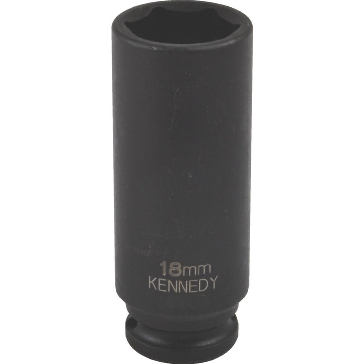Kennedy 3/8in. Drive, Deep Hex Impact Socket, 18mm, Metric, Black Oxide Finish
