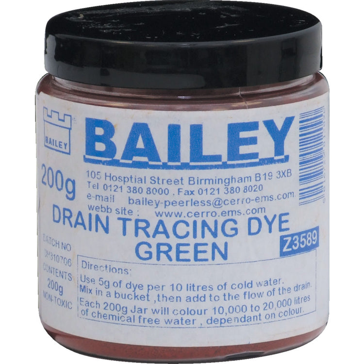 Used to locate the direction of water flow in pipes and drains. Available in three colours to suit your needs, each product is soluble in water. Supplied in 200g jars. Features and Benefits • Available in three colours to suit your preferences • Cost effective and efficient way of locating the direction of the flow of water • Soluble in water to simply wash away Typical Applications • Plumbing • Engineering