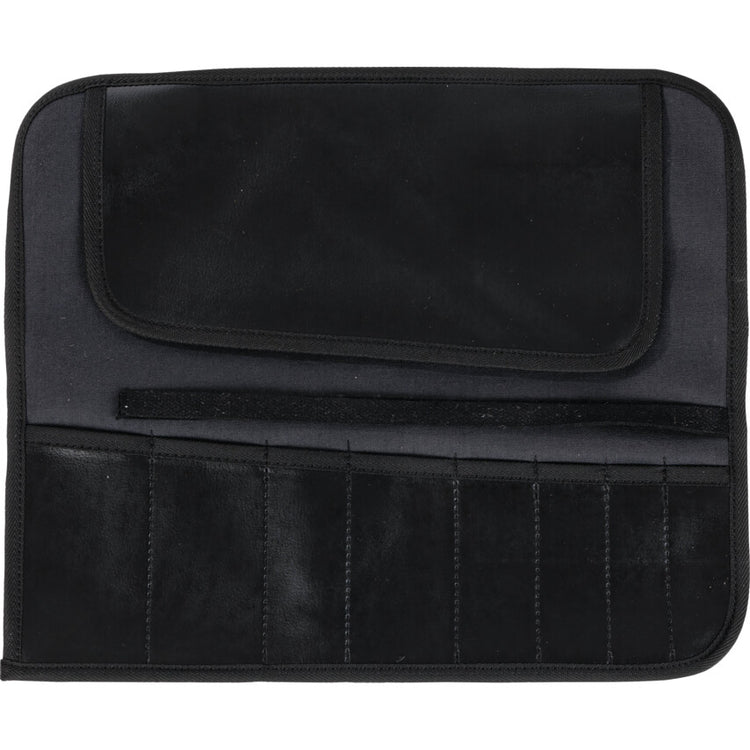 This waterproof chisel roll possesses 8 flat pockets and has a PVC coated cotton structure, with securing leather strap and metal buckle fastening. Tools are secured with a flap cover. Tools are not included. Features and Benefits • Waterproof for protection in all weathers • Tools are secured by a flap buckle to keep them secure when in transit • PVC coated cotton structure is durable yet lightweight • Eight flap pockets ensure you have ample storage for your most used tools • Securing metal buckle and leather strap allows you to attach the pouch to your person Typical Applications • Carpentry • Construction Workers