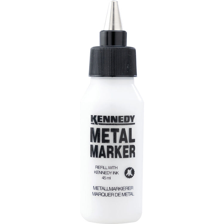 Designed for countless metal marking applications. Can be used for marking greasy, rusty, or new metal surfaces, also suitable for marking glass, plastic, wood, ceramics etc. The ballpoint nozzle cap will only allow ink flow when applied and pressed to the workpiece - ink cannot be spilt from the cap unintentionally. One head can be interchanged from differing inks and bottles. Refillable from 1 litre bulk refills of the specially formulated ink. Features and Benefits • For use in multiple marking applications • Can be used on a variety of metals including greasy and rusted surfaces • Suitable for use on plastic, glass, ceramics and wood • Ballpoint roller nozzle prevents ink being spilled from the cap • Refillable via bulk refills Typical Applications • Metal • Plastic • Ceramics • Glass • Wood Notes •Size: 45ml * Images used for illustration purposes - Items sold separately