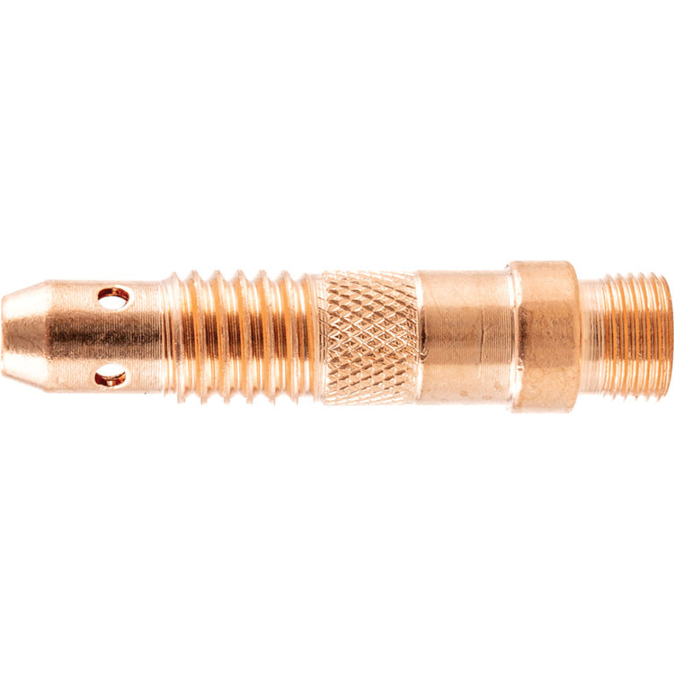 This range of standard collet bodies are designed to suit all 17/18/26 type TIG torches. The product is available in varying sizes to suit your requirements. Features and Benefits • Available in a range of sizes to suit your specific needs • Each product can be used with WP17, WP18 and WP26 type torches for versatility of use • Helps to provide excellent welding results by stabilising the collet Typical Applications • TIG Welding