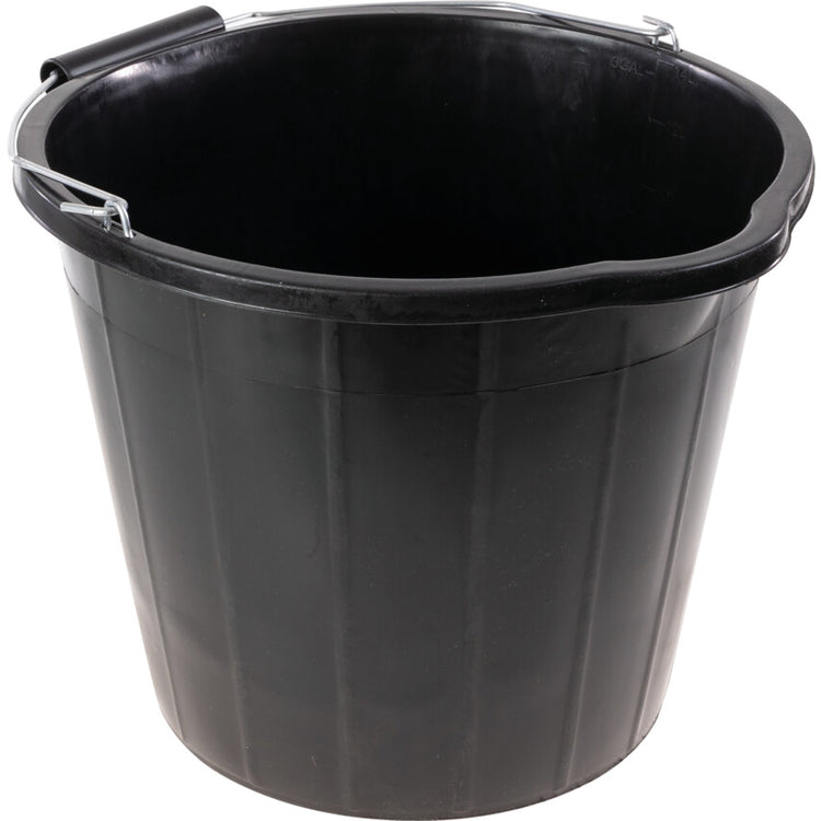 Kennedy Black Plastic Rigid Bucket, Steel/Plastic Grip Handle, 3 Gallon