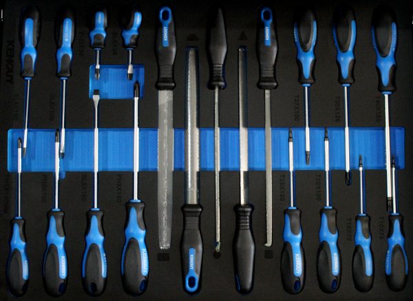 | Included Tool Contents | Sockets: 1/4″ and 1/2″ drive 12-point sockets Ratchets & Accessories: Quick-release ratchet handles, extension bars, universal joints Wrenches: 25-piece combination wrenches (6-32 mm), 2 adjustable wrenches Hex Keys: 9-piece ball-head hex key set Bits: 31-piece bit set with adaptors Screwdrivers: Slotted, Phillips, and Torx profiles; spinner handle Pliers: Long-nose, diagonal-cutting, combination, groove-joint, locking, internal & external circlip Hammer: 2 lb ball-pein hammer Files: Selection of steel files (multiple profiles) Other Tools: Utility cutter with spare blades, 5 m tape measure, spark-plug sockets, riveter, staple gun, assorted fasteners |