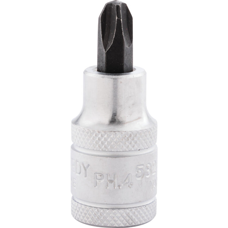 This range of 1/2 inch square drive screwdriver socket bits offers reliable performance and long service life across demanding applications. Engineered from high-quality chrome vanadium steel and fully chrome plated with a mirror finish, these bits are resistant to wear, corrosion and impact. With ball retaining grooves on all square drive faces, they provide a secure fit and safe operation. Available in a selection of socket sizes and bit types to suit multiple metric fastener profiles. Features and Benefits • 1/2 inch square drive for compatibility with standard manual tools • Wide range of socket sizes and bit types for versatile application • Chrome vanadium steel construction for strength and reliability • Chrome plated mirror finish enhances corrosion resistance and ease of cleaning • Ball retaining grooves on each square drive face ensure secure tool engagement • Aluminium-free design ideal for specialist environments • Designed for safe manual use in construction, automotive, electrical and more Standards • Conforms to DIN standards for quality assurance