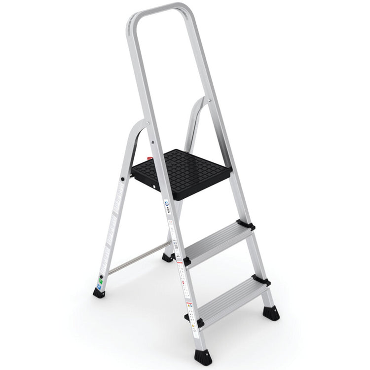 These Platform Steps are designed for safety, stability and ease of use. Built from durable aluminium, they feature non-slip treads, a wide platform and secure rubber feet for reliable grip on floors. Lightweight and slim, they are easy to transport and store, making them ideal for a variety of tasks. Features and Benefits • Durable aluminium construction for long-lasting strength • Non-slip treads and platform for added safety • Rubber feet provide slip resistance on floors • Lightweight and slim design for easy transport and storage • 280mm platform depth ensures comfort during use • Handrail positioned at 600mm above the platform for security at height Notes • 3-tread option offers compact height for smaller tasks • 4-tread option provides greater reach for higher workspaces Standards • EN 131 Professional - Intended for use in a workplace