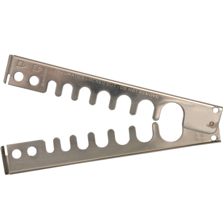 Manufactured from solid stainless steel this Pneumatic Lockout is strong, durable and resistant to corrosion and fits virtually all pneumatic fittings used in manufacturing facilities. Simple to use, place the pneumatic male fitting between the appropriate sized hole and close with a scissor action. This then prevents the hose from being used. Once the lockout is in its closed position it can be locked using up to two safety padlocks.