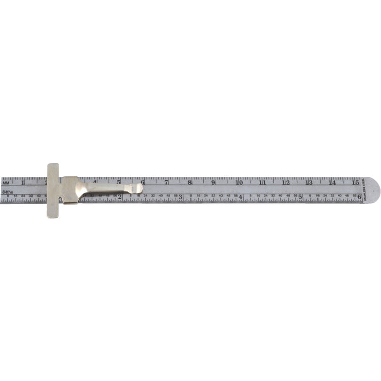 The Senator round ended rule offers spring tempered stainless steel blades for increased durability. 12mm blade width with pocket clip/depth gauge slide. Reverse side is marked with 1/64" to mm conversion table for easy readings. Features and Benefits • Durable spring tempered stainless steel blades • 12mm blade width with pocket clip/depth gauge slide • Reverse side is marked with 1/64" to mm conversion table for easy accurate measurements