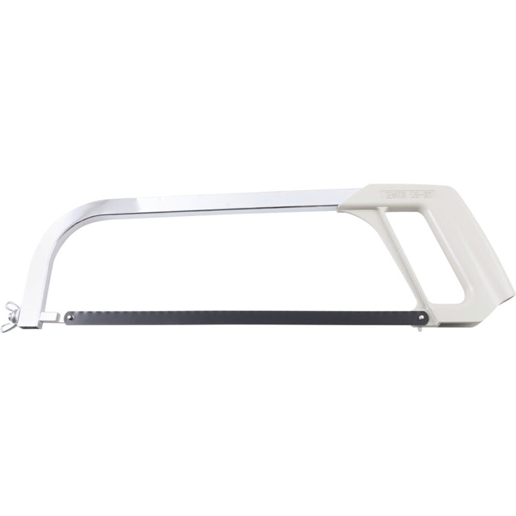Suited primarily for light-duty use, this Hacksaw frame and blade is a simple way of getting to work on your desired project immediately. Comprised of a lightweight body and wing nut blade tensioner, the hacksa w frame is supplied with a 24 TPI accompanying blade. Features and Benefits • Wing nut blade tensioner allows you to easily and quickly adjust the blade tension to suit your needs • Supplied with both the hacksaw frame and 24 TPI blade to get you working immediately • Blade can be replaced when dull to keep your tool working to an optimum level • Die-cast aluminium handle is durable and allows a sturdy grip when operating Typical Applications • Woodworking • Workshops