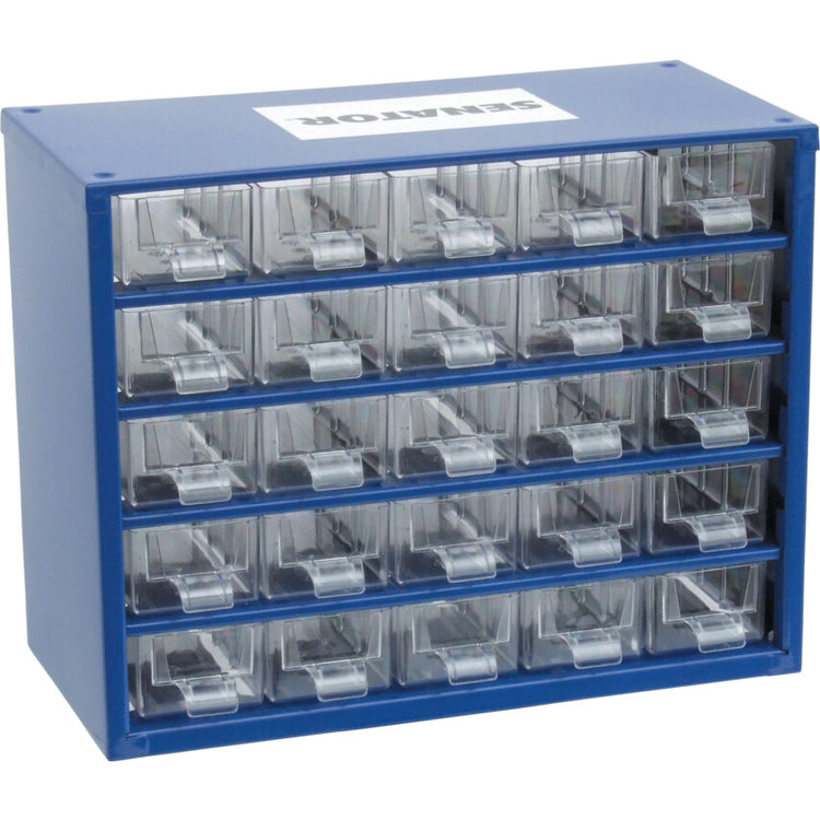 Senator Drawer Cabinet, Steel/Polypropylene, Blue/Transparent, 306x155x282mm, 25 Drawers