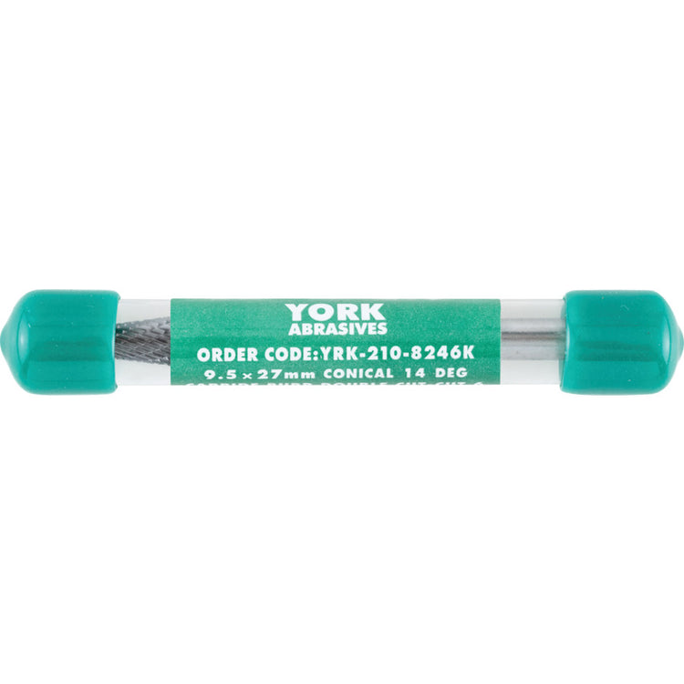 York Carbide Burr, Uncoated, Cut 6 - Double Cut, 9.5mm, Conical
