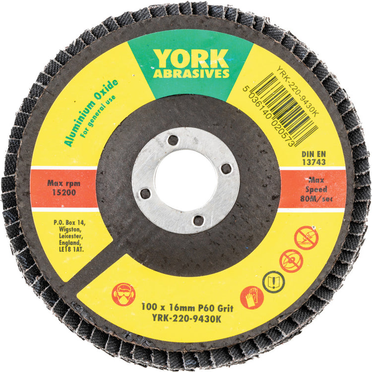 York Flap Disc, 100 x 16mm, Conical (Type 29), P60, Aluminium Oxide