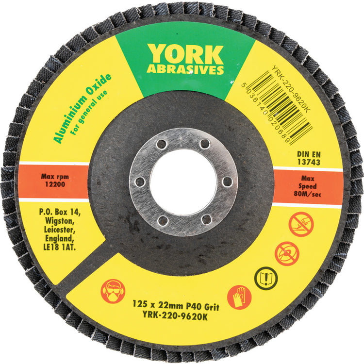 York Flap Disc, 125 x 22.23mm, Conical (Type 29), P40, Aluminium Oxide