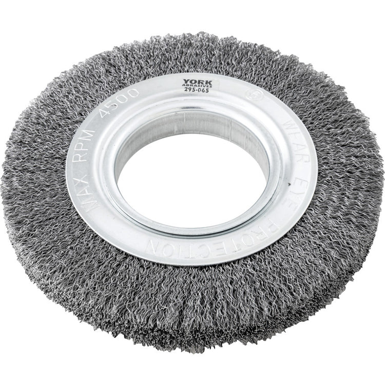Crimped wire wheel brushes include models designed for de-burring, edge blending, roughening for paint adhesion, removing heat colourisation, finishing, and surface prep. Features and Benefits • High-quality tempered crimp wire provides fine to medium coarse brushing action • These wire wheels provide quick cutting action and excellent longevity Notes • Some models may also be used for cleaning rust, scale, dirt, and paint • Arbor hole mount models attach to compatible arbors for use with power tools and machines