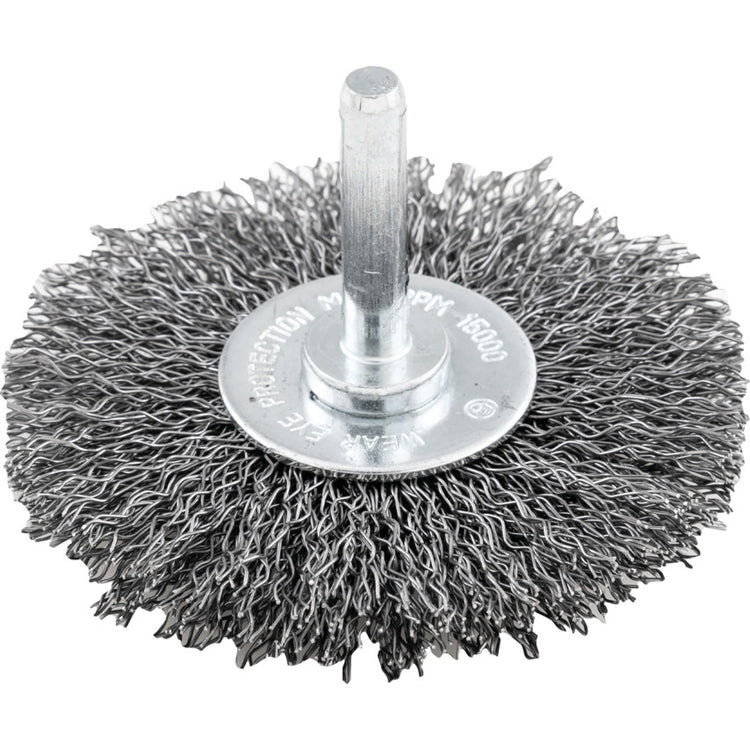 Circular brushes with shaft are small diameter brushes and are good to be used for drill machines. Normally the RPM is 4500. It's good for both Professional and do-it-yourself work. Features and Benefits • High quality, durable crimped wire bristles • Provides a safe, secure fit Typical Applications: • Remove paint and other coatings, including rust and scale from all types of steel work-pieces and oxide layers from stainless-steel and non-ferrous metals • Creating metallic cleaning surfaces • Cleaning tool dies • De-burring castings • Matt finishing of metal surfaces