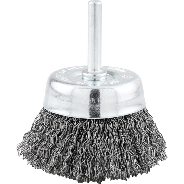 Cup Brushes with shaft are small diameter brushes and good to be used for drill machines. Application: Cleaning prior to welding, rust and paint removal, weld spatter, and corrosion removal surface ships, metal surface, light and medium duty cleaning. Crimped Wire Cup brushes are good to be used to clean large surface plates for rust removal or concrete surface conditioning work. Normally it's mounted on anger grinder. In working site, it's also possible to be mounted on stationary machines.