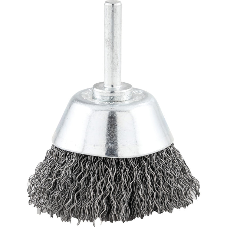 Cup Brushes with shaft are small diameter brushes and good to be used for drill machines. Application: Cleaning prior to welding, rust and paint removal, weld spatter, and corrosion removal surface ships, metal surface, light and medium duty cleaning. Crimped Wire Cup brushes are good to be used to clean large surface plates for rust removal or concrete surface conditioning work. Normally it's mounted on anger grinder. In working site, it's also possible to be mounted on stationary machines.